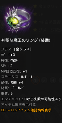 ILLもWIZもスナッパー2個、神聖魔王のリング2個装備する予定ですが、95Lvになってリング枠増えた場合は、これを装備させるといいかなと思い購入しました。