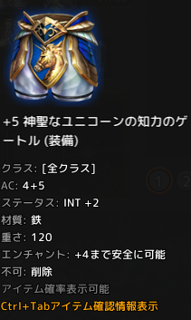 ILLが7アイアンゲートルだったので、INT上がるゲートルにしてあげたかった。