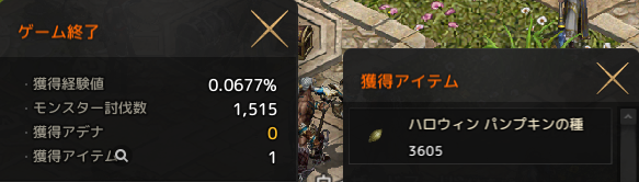 - イベマのモブを倒してハロウィンパンプキンの種を集める