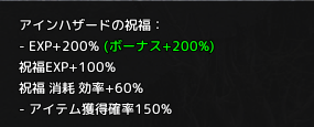 - EXPバフは祝福なしで+445%、ありなら+645%、特別マップはボーナスが入るので+845%