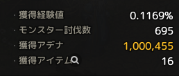 イベントアイテムの残滓は1個4k以上で買取されているので、全部売るとしたら1hで8M近い稼ぎになります