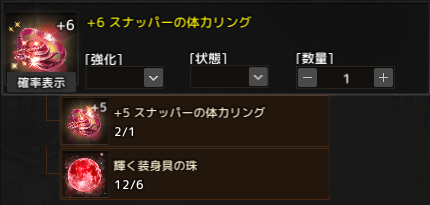 今回は、期間限定で確率が上がっているブレスレットの強化に挑戦して、失敗したら珠で体力スナッパーを強化します。