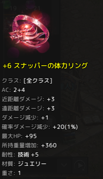 ブレスレットが+6で、体力スナは+5Bが2個って感じです。